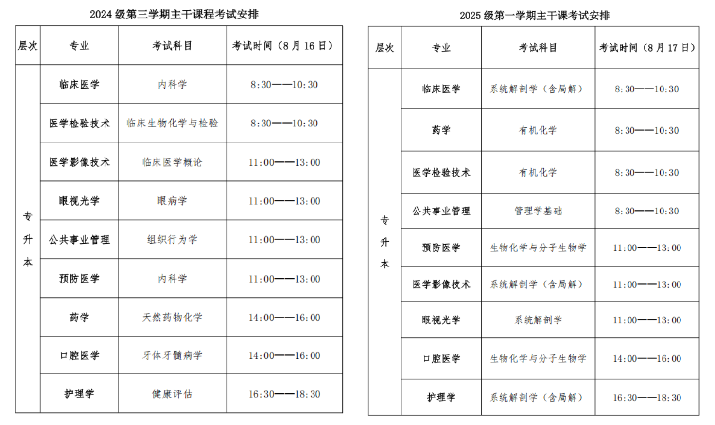 2024级:考前测试时间:8 月 11 日——15 日。