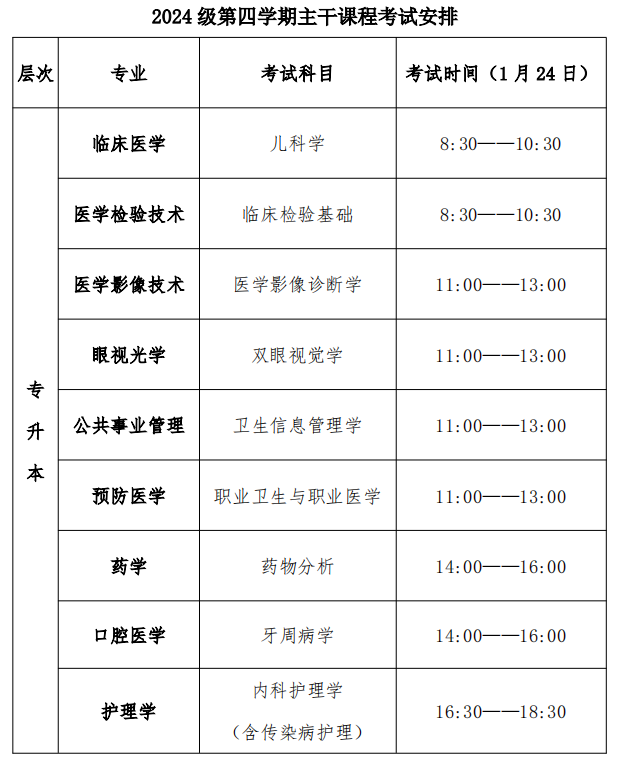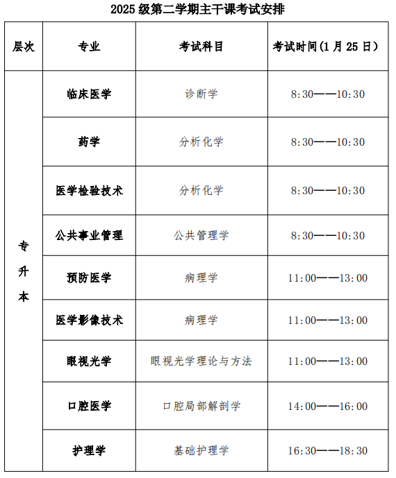 按照我院2025年第二学期考试工作安排,定于2026年1月24日、1月25日进行主干课程线上考试,现就考试相关安排通知如下: